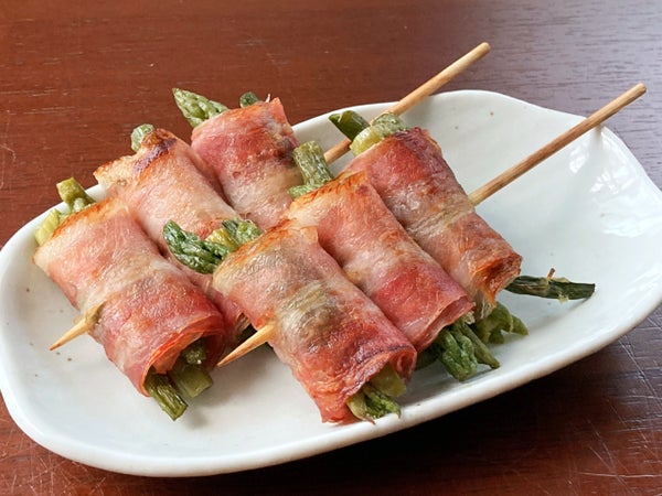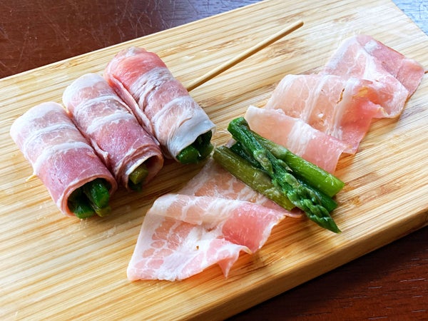 | アスパラ/ベーコン | 太アスパラ1本 | 細アスパラ数本/薄切りベーコン | アスパラ数本 | |||