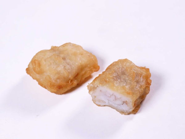 スケソウダラを使用。認知度が高い白身魚なのでお客様の安心感があります。端材成形ではないので、形はまちまちです。