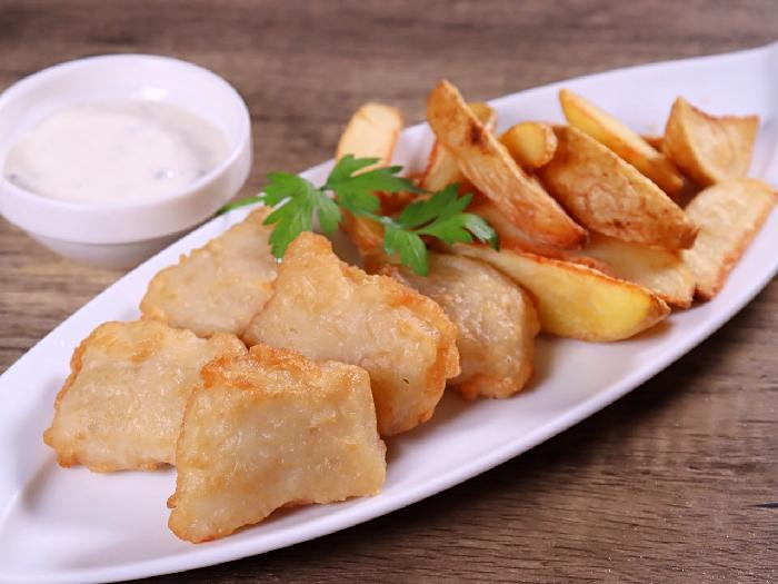 スケトウダラ、衣(小麦粉、食塩、砂糖、米粉、酵母エキス)、揚げ油(なたね油)/増粘剤(加工デンプン)、膨張剤、香料