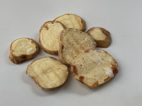 ホクホクとした食感の北海道産男爵を皮付きのままスライスしてこんがりと焼き上げました。電子レンジやオーブンなどで温めるだけの簡単オペレーションでお使いいただけます。