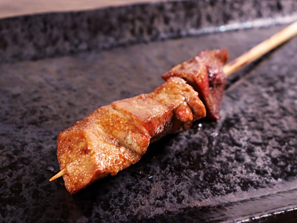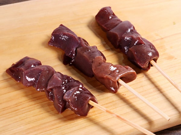国産豚レバーを3~4片を打ちました。レバーが止まりやすいように角串を使っています。