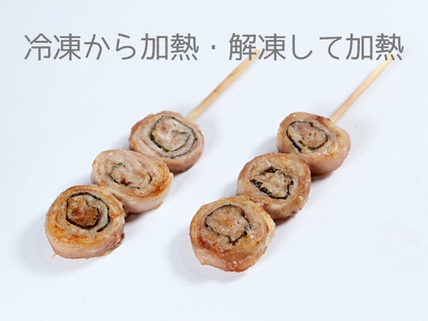解凍してから焼くことで、やわらかくジューシーに焼きあがります。ただし型崩れしないように注意してください。冷凍のままから焼くと少し締まった固めの食感になります。