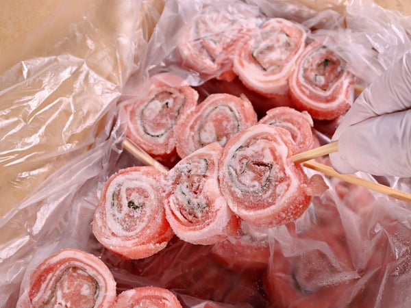 冷凍のまま1本ずつ取り出せます。解凍する場合は平面に並べて型崩れしないようにしてください。