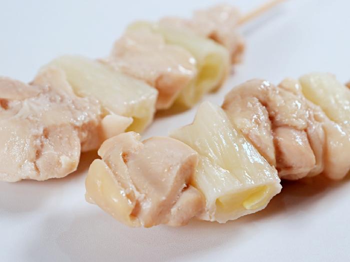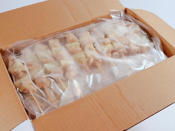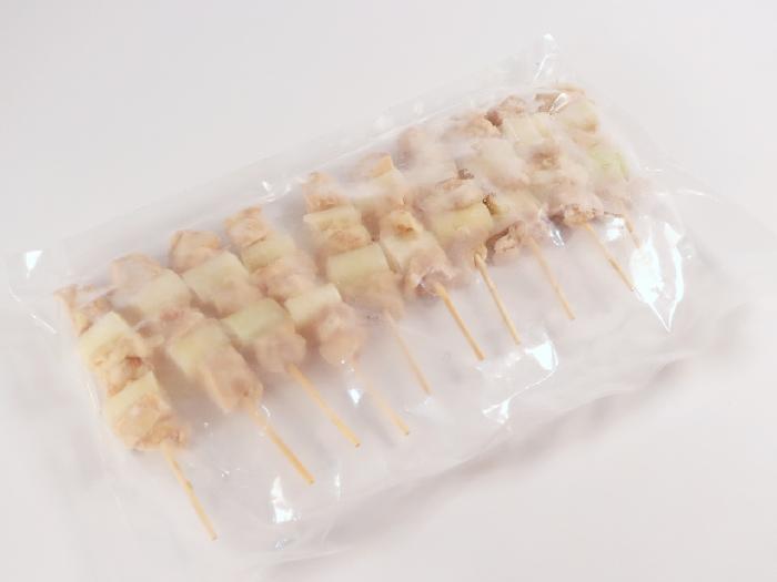 鶏ももとネギを刺し、スチームにかけました。生焼けの心配がありません。使いやすく10本ずつパックしてあります。