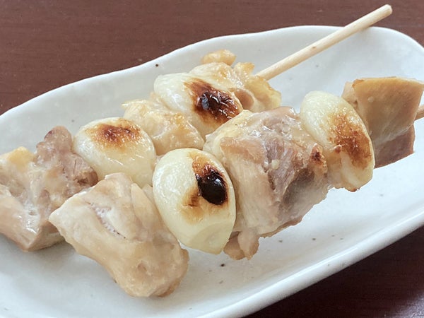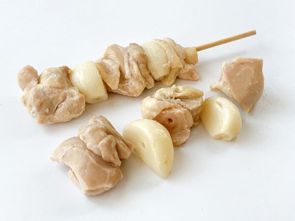 ニンニクを2粒、もも肉と交互に串打ちしています。