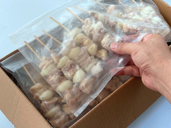 鶏ももとにんにくを刺し、スチームにかけました。生焼けの心配がありません。使いやすく10本ずつパックしてあります。