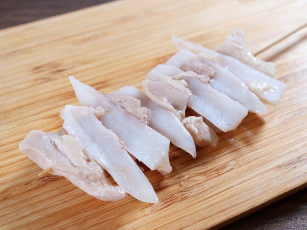 ヤゲン軟骨に鶏モモ肉を挟んで刺し、スチームしました。スチーム済の為、生焼けの心配がありません。