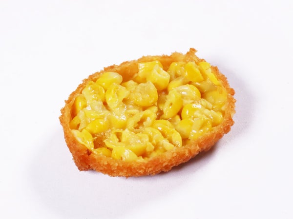 野菜(とうもろこし(北海道産)、ばれいしょ)、果糖ぶどう糖液糖、バター、ゼラチン、しょうゆ、食塩、パーム油、衣(パン粉、小麦粉、でん粉)/加工でん粉、着色料(パプリカ粉末)、香料、増粘多糖類、(一部に小麦・乳成分・ゼラチン・大豆を含む)