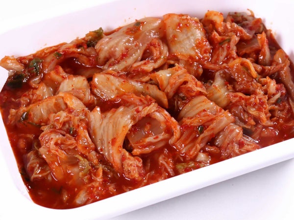 白菜、漬け原材料〔大根、糖類(果糖、水あめ)、赤唐辛子粉、にんにく、食塩、長ねぎ、魚醤(魚介類)、醸造酢、塩辛(イワシ、カンダリ、サッパ、タチウオ、イシモチ)、エビエキス、しょうが、ごま、乳酸菌発酵液、アワビエキス、酵母エキス、マグロエキス〕/調味料(アミノ酸等)、pH調整剤、増粘剤(キサンタンガム)、ソルビトール、ビタミンB1、甘味料(アセスルファムK)、(一部にえび・あわび・ごま・大豆・魚醤(魚介類)を含む)