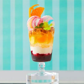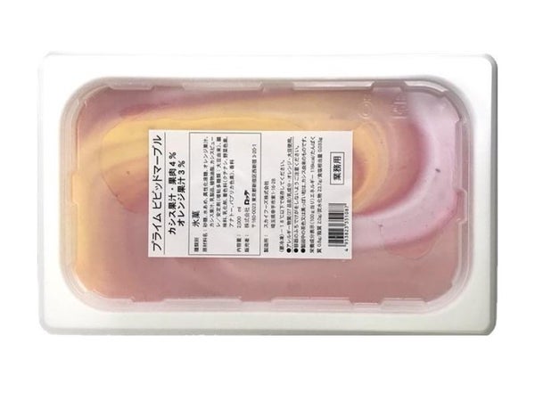 カシス・オレンジ・ヨーグルト味のビビッドカラーがマーブル状にミックスされた、見た目にも楽しいアイスです。