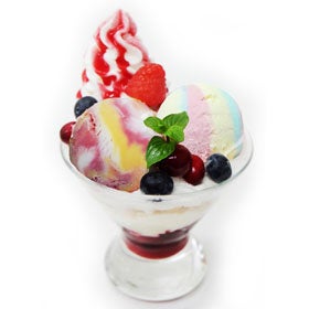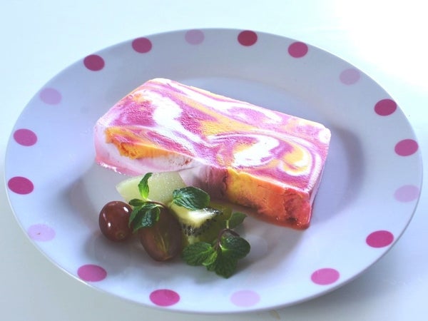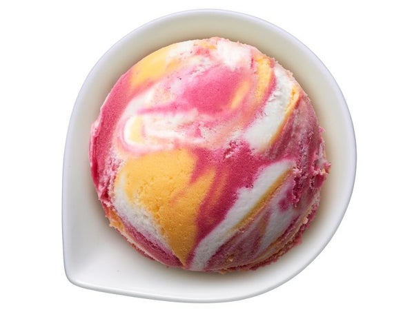 カシス・オレンジ・ヨーグルト味のアイスが3色マーブルに