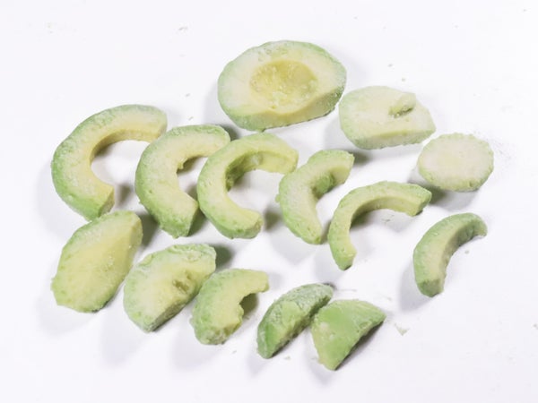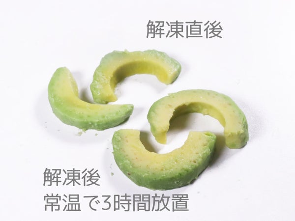 生アボカドのスライスと同様、端のほうは小さく、大きさや形は一定ではありません。