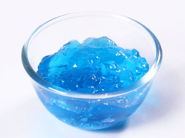 キラキラでカラフルなクラッシュゼリー。フォトジェニックなドリンクやデザートを作れます。パイナップル果汁を使い、ブルーハワイをイメージしました。