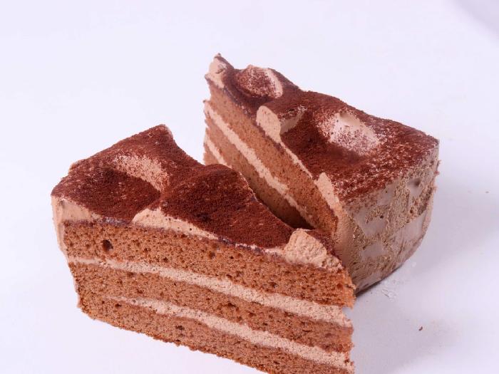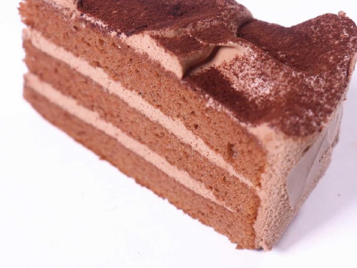 ココアスポンジに、生チョコと練乳を配合したなめらかなクリームを合わせ、ココアパウダーで仕上げたシンプルなチョコケーキです。