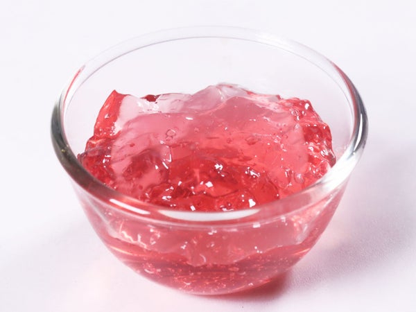 キラキラでカラフルなクラッシュゼリー。フォトジェニックなドリンクやデザートを作れます。ピーチ果汁を使い、ベリーニをイメージしました。