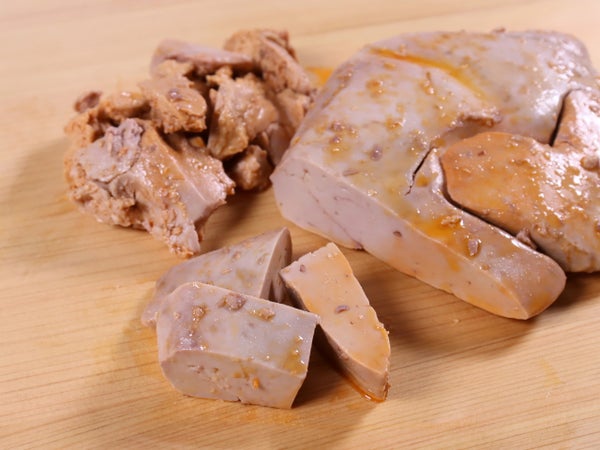 鮮度の良い肝を高温加圧殺菌した、とろける食感のあん肝です。未成型・未結着のため肝の大小や崩れがありますがその分お値ごろで、形状を問わない珍味小鉢や鍋物のコクだしにおすすめです。