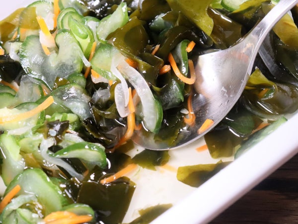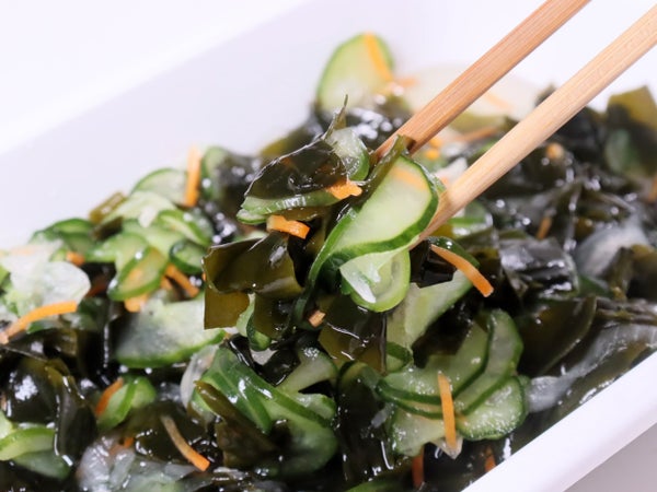 きゅうり(国産)、わかめ(三陸産)、玉ねぎ(国産または中国産)、砂糖、人参、還元澱粉糖化物、食塩、醸造酢/酢酸ナトリウム、グリシン、酵素(一部に卵を含む)