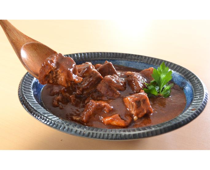 約2.5cmカットしたアメリカ産牛バラ肉を特製濃厚デミグラスソースでトロトロじっくり煮込みました。