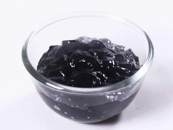 キラキラでカラフルなクラッシュゼリー。フォトジェニックなドリンクやデザートを作れます。リモンチェッロをイメージした、黒いレモンゼリーにしました。