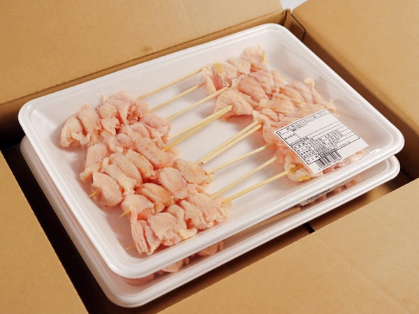 大山どりのぼんじりを串打ちしました。1本30g。15cm串。この大山どりシリーズは、肉を串先側に寄せて刺しているのでぎゅっと太め短めになっており、肉々しい食感が感じられます。