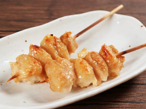 少し大きめのカットで、独特の脂のうまみと皮のおいしさを同時に味わえる串です。