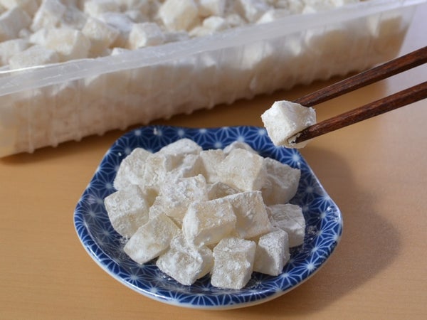 9mm角程度に細かくカットしたわらび餅。薄甘いプレーンな味で広い用途で使えます。
