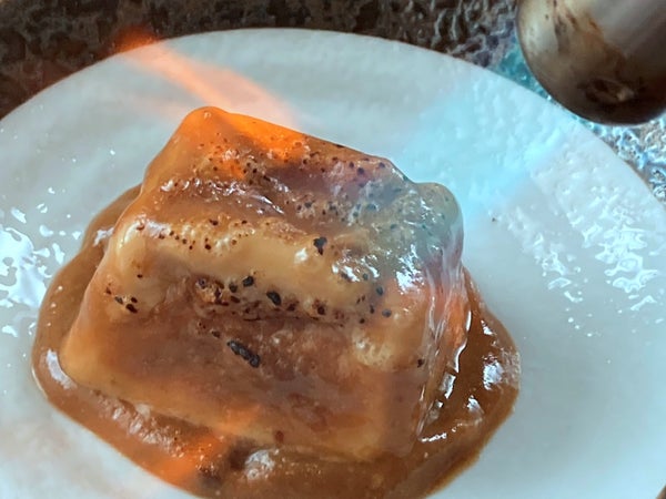 バーナーで炙ると、味噌の香りと甘さが際立ち、チーズ豆腐がトロトロになります。