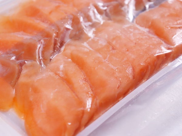鮮度と色味が良い大型のトラウトサーモンを使用し、丁寧に骨をとりスライスしました。シート入りなので、使いやすいパックです。