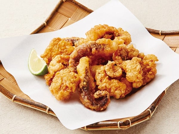 足だけでなく、頭や軟骨まわりの部位も余すところなく使用したたこから揚げです。たこ原料減少の中、できるだけ供給や価格を維持できるように工夫された商品です。たこらしい足部位はその分少ないですが、大きめカットでその存在感が立つようになっています。