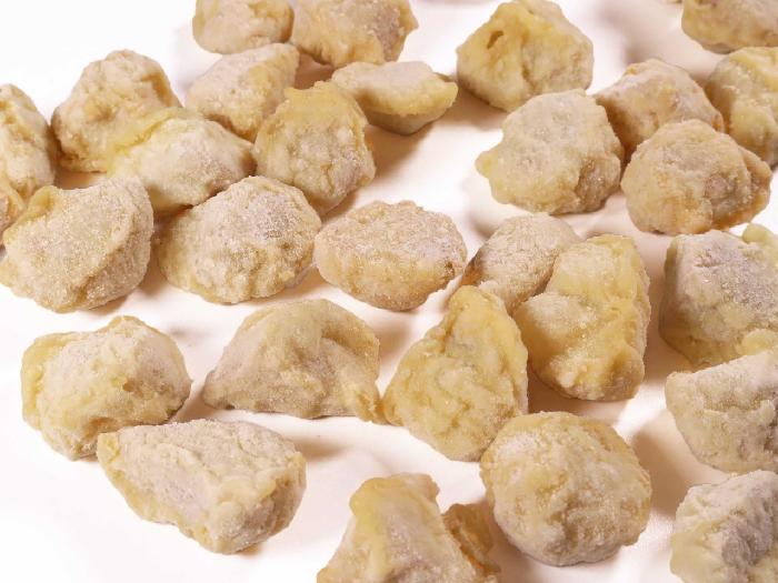 冷凍のまま、約170℃の油で、5~5分半揚げてください。