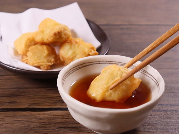 甘醤油でしっかり味がしみ込んだ「里芋の煮物」をタネにした、煮物の天ぷらです。とろりとした里芋のうまみを味わえる揚げ物です。