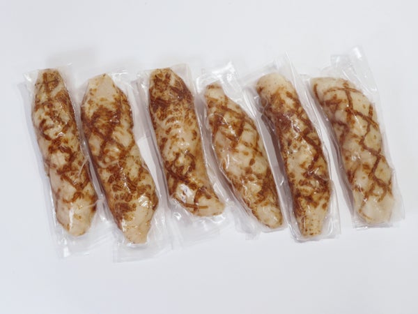 写真で個包装1本分です。歯ごたえのある身質なので、ふぐ刺し同様うすめのスライスがおすすめです。