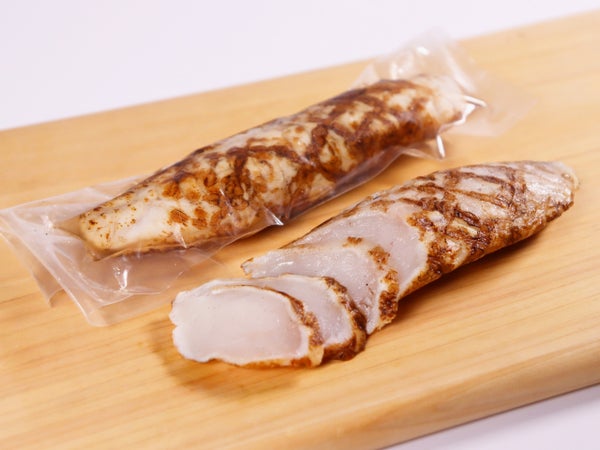 新鮮なごまふぐの表面を炙り1本づつ真空包装加工しました。タタキ特有の歯応えと、少しさっぱりした味わいですので、冷菜として通年で人気なつまみです。