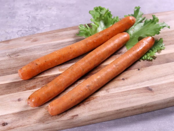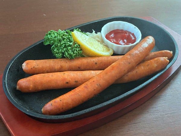 長さ18cm前後、天然羊腸使用のため多少の長短があります。パリッとした歯ごたえとしなやかな肉、はじける旨辛の肉汁が特徴です。