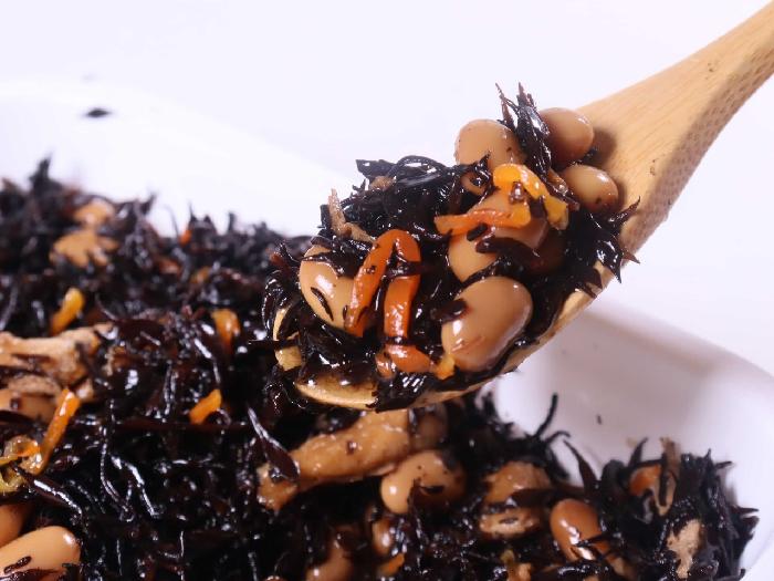 ひじき、大豆、人参、油揚げ。全体に照りがある仕上がり。