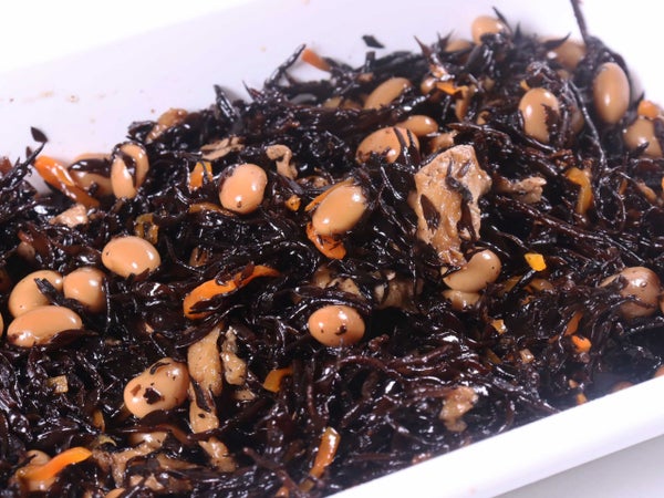 ひじき、大豆、人参、油揚げ。全体に照りがある仕上がり。