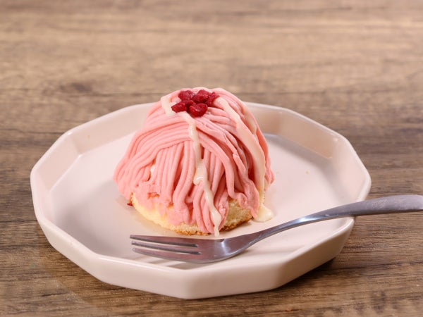 福岡県名産のあまおういちごをクリームに使った、ピンク色のかわいいモンブラン。