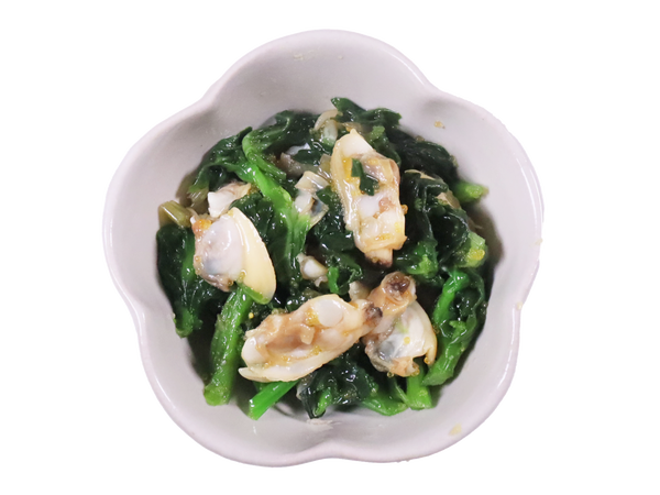 菜の花とあさりの春の組み合わせを、わさび味のおひたしに仕立てました。