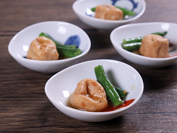 がんも1個:いんげん2本の割合でお使いいただくと、おおむね均等になるでしょう。お通しに。