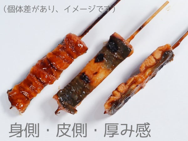 うなぎのどの部分かによってばらつきがありますが、細長い串が中心です。