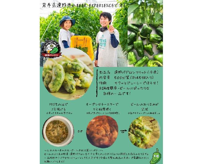 スペインではおつまみの定番となっているピーマンのようなやみつき野菜、パドロンを岩手県遠野市で栽培・収穫し、フリット加工しました。サクッとした衣とほろ甘くジューシーな味わいです。