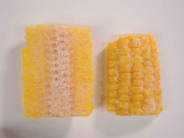 生のコーンから切り出すのは本当に手間です。どうしても粒が崩れてしまいがちでなので、スライス済み商品はとても便利です。