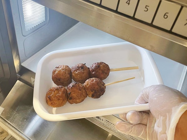 レンジ加熱で提供できます。1本あたり500Wで約2分20秒。