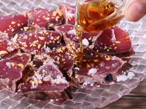 土佐伝統漁法「一本釣り」は、一尾ずつ釣り上げるため身の傷みが少なく鮮度が落ちるのを防ぐことができます。釣り上げてすぐに船上で急速凍結、釣った瞬間の鮮度を保ったB1原料を使用しています。