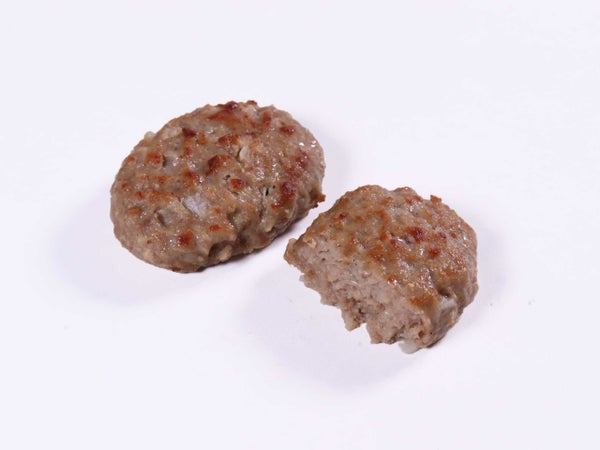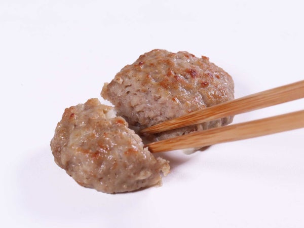 鶏肉と大豆由来のたん白を使用したソフトなハンバーグです。小さめの40gサイズ。