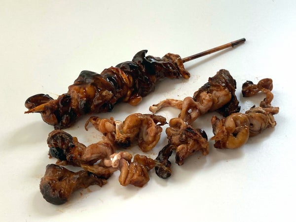 1本約30g、しっかり4~5尾分の肝が串打ちされています。