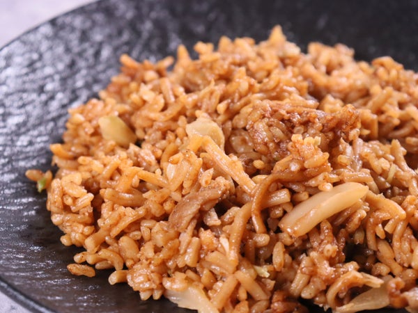 ソース焼きそばに、ご飯を混ぜた神戸生まれの庶民の味です。2種類のソースで濃厚な香ばしい味に仕上げました。