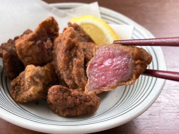 特製唐揚げ粉をまぶしたひとくち牛タンです。牛タンのタン下やタン先、端材なども使い切ることで、高騰する牛タンでも提供可能な価格帯に仕上げています。