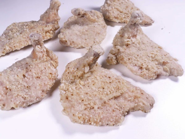 タピオカ粉を使用した衣でコーティングがサクサク軽快な食感の秘密。