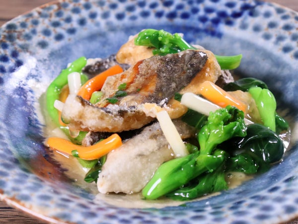 サワラの骨を除き、食べやすいよう一口大にカットし粉付けしました。ジューシーでふっくらとした身で、素材本来の旨味が感じられます。そのままでも、あんをかけてアレンジしてもおすすめです。